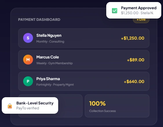 Every other platform started with direct debit and added PayTo later. We started with PayTo. That's not a small difference — it changes everything about how fast, secure, and reliable your payments are.